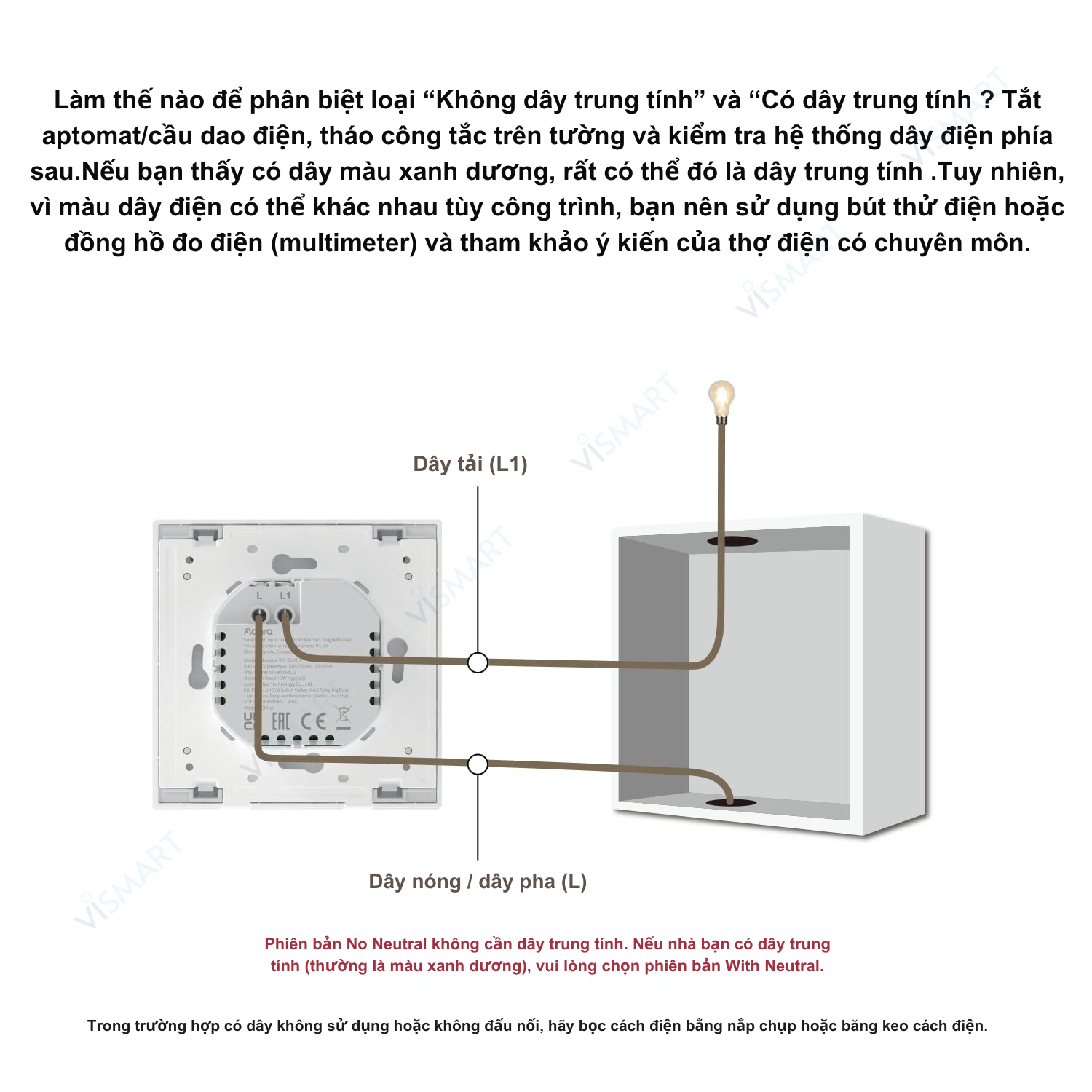 - Công Suất Tối Thiểu 3W: Để công tắc hoạt động ổn định, tổng công suất của các bóng đèn được kết nối phải đạt tối thiểu 3W.