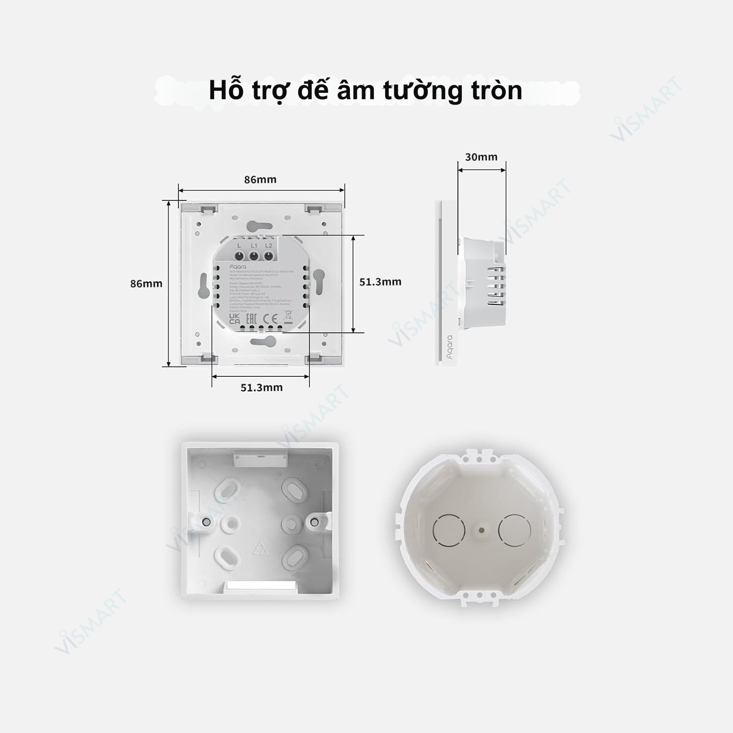 - Chỉ Dùng Đế Âm Vuông: Sản phẩm được thiết kế cho đế âm tường HÌNH VUÔNG chuẩn châu Âu (kích thước 86x86mm). Vui lòng kiểm tra đế âm nhà bạn trước khi đặt mua.